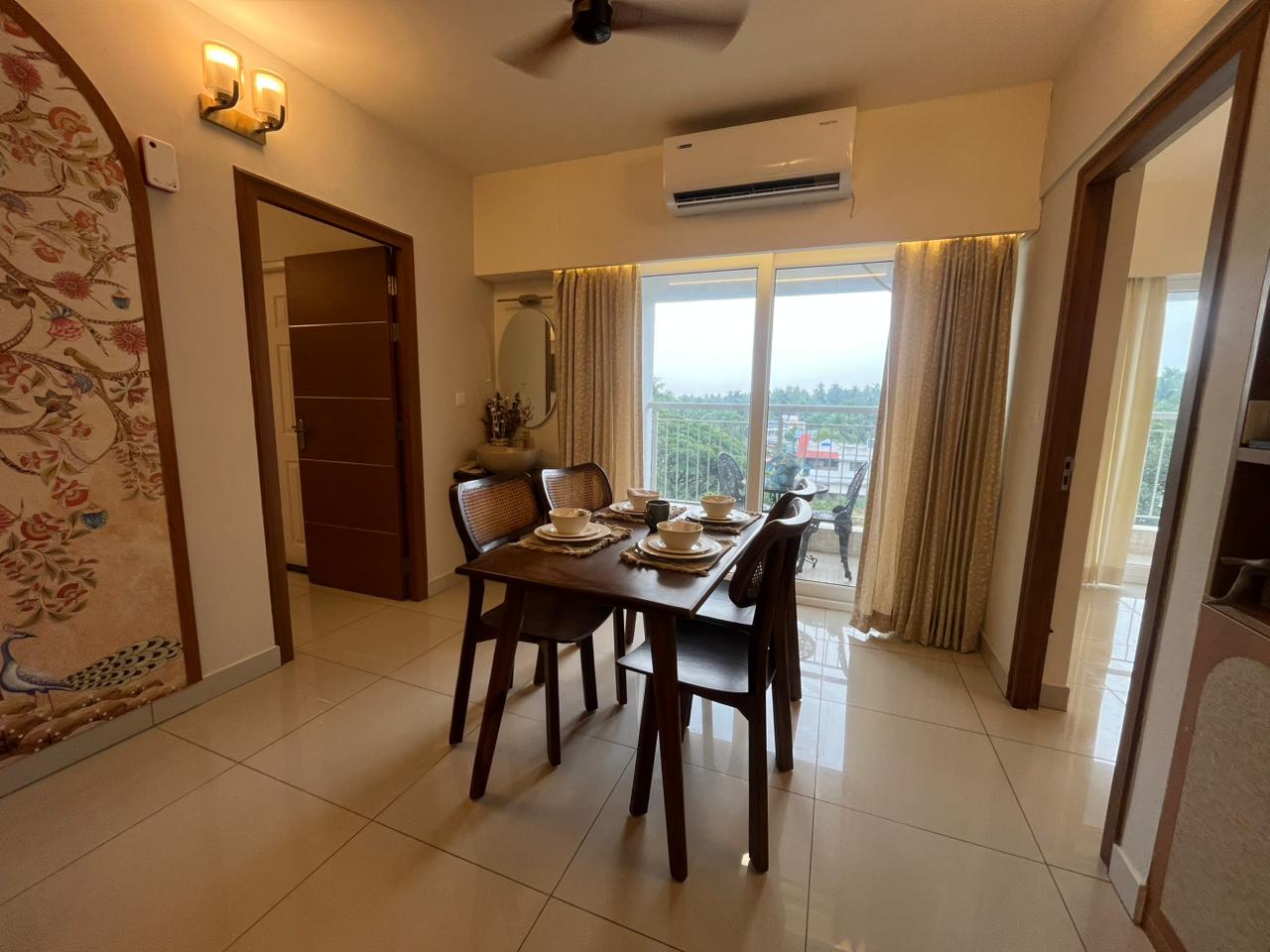 Fully furnished 3bed room 1410Sqft High rise apartment Available for sell at Koorkenchery Thrissur. This flat consist of Spacious Living, Dining, Kitchen cabinets, Vitrified tiles for living, dining, furniture include: 3 cot with bed, Tv Unit, dining table with chair, sofa settee, light and fittings light and fittings, curtains, wardrobes, elegantly designed 3 bathrooms, work area, balcony, too.. The apartment with all the modern amenities & branded specification with the best affordable rate ensuring value for money.