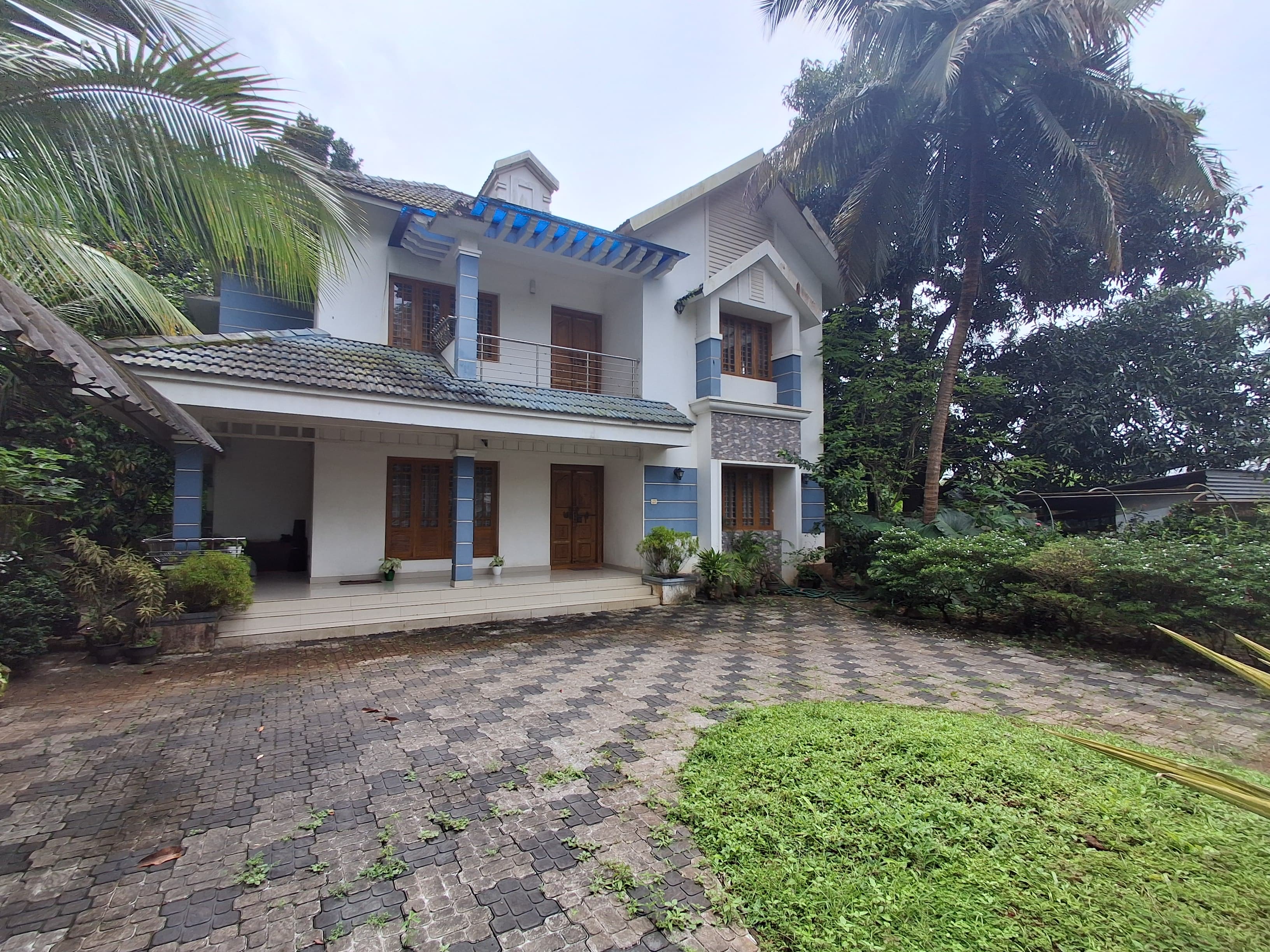 villa located at Thiroor Thrissur. newly built house 2650SqFt, 14.5 Cent semi-furnished, newly posh villa got 4 bedroom, generous living space, stylish finished Dining, Kitchen platform with black granite counter top and stainless steel sinkwith single bowl and drain board, wardrobes, 4bath, common toilet, generous Balcony, wide work area, Superior quality vitrified tile flooring, brand vitrified tiles in sitout, living, dining, bedrooms, kitchen and balcony and ceramic tiles in toilets and work area, tar road access, Surrounded compound wall with entrance gate, Unlimited natural water supply through the internal pipeline from the open well. This home beautifully planned that whenever you step out you witness an abundance of verdant greens.