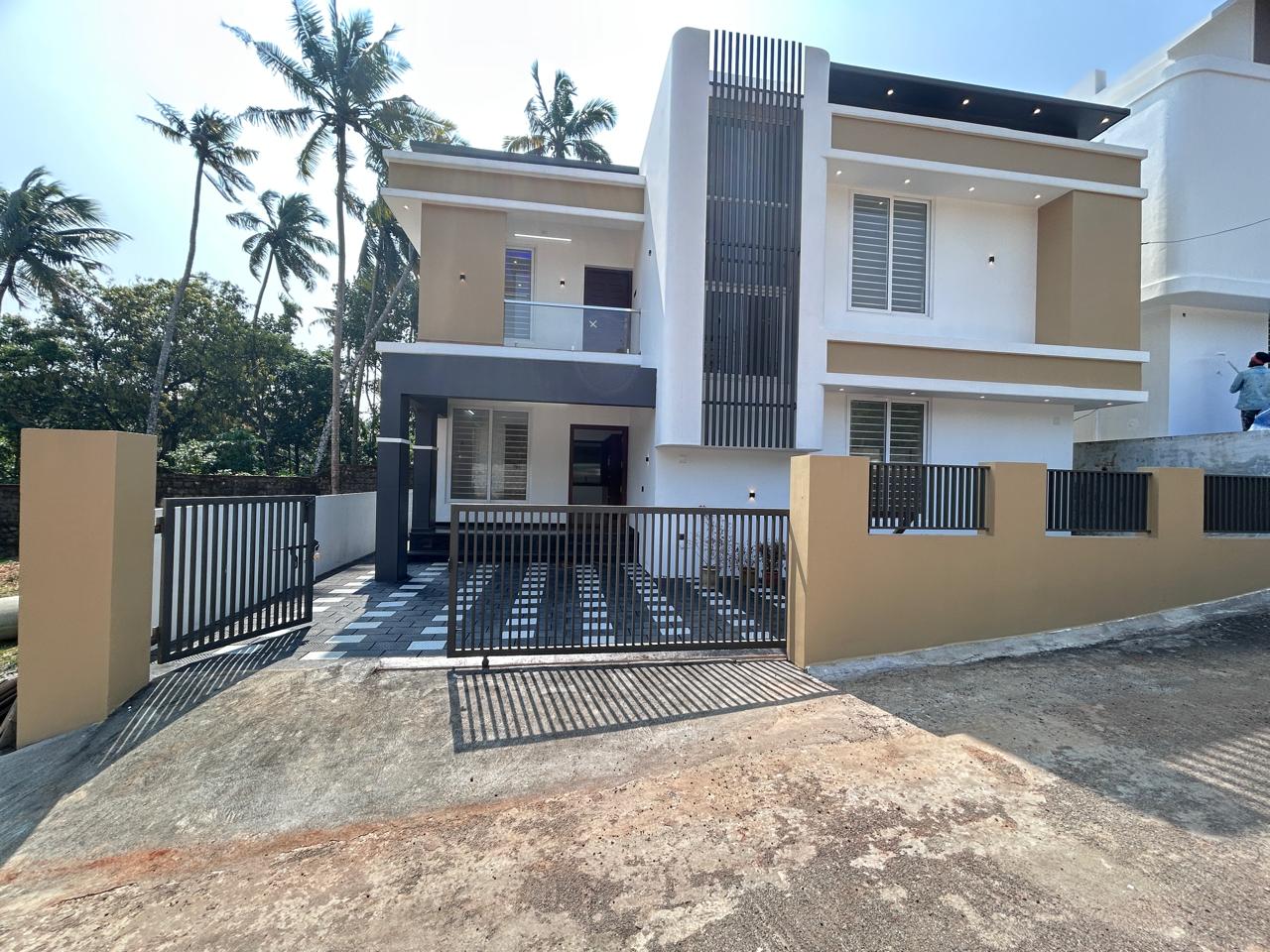 New Semi furnished 4 bedrooms, 2250Sqft, 5cent, villa located at Anchery Thrissur. stylish finished Dining, Kitchen cabinets, Kitchen platform with black granite counter top, wardrobes, 4-bathroom, common toilet, Balcony, wide work area, , throughout the year Unlimited natural water supply through the internal pipeline from the open well. All the amenities that make life more pleasurable have been incorporated. This is a really stunning and beautiful house design with lots of latest facilities.