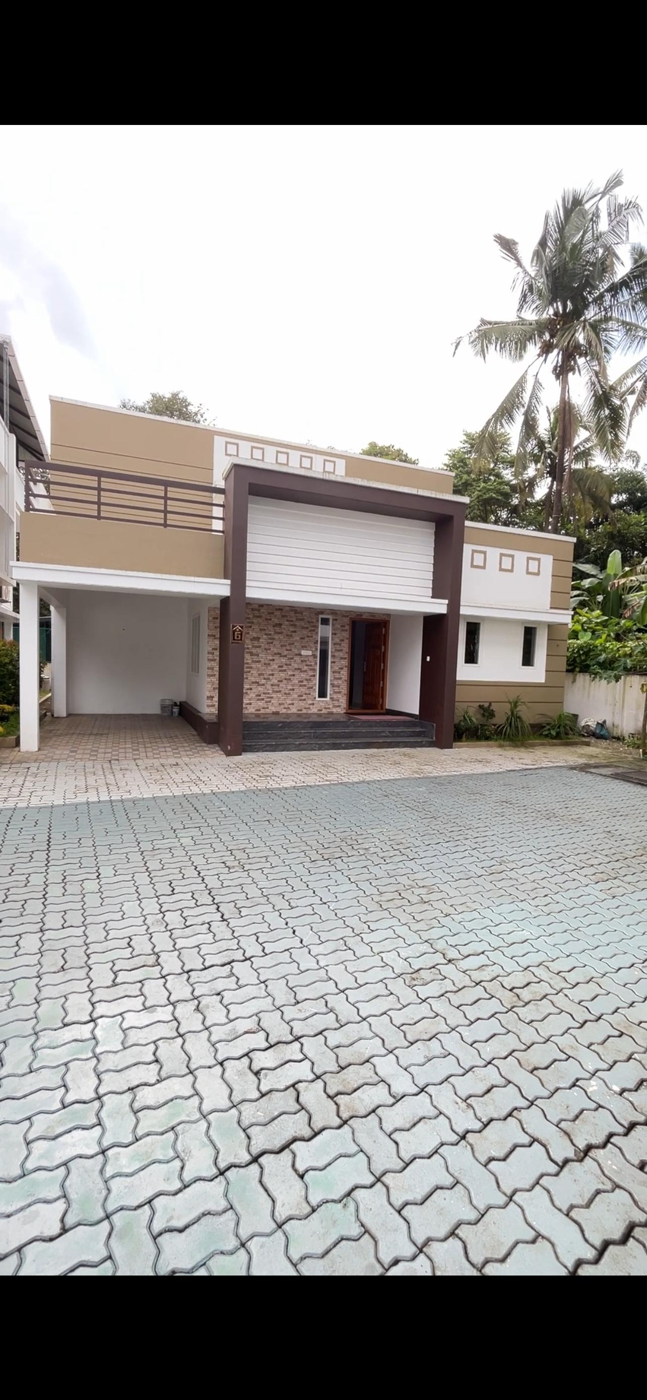 Gated Community new villa located at Muthuvara Thrissur. Newly built house 1950SqFt, 6.58Cent , newly posh villa got 4 bedroom, generous living space, stylish finished Dining,Kitchen , platform with black granite counter top and stainless steel sinkwith single bowl and drain board glazed tile dado above granite counter top up, 4bathroom, common toilet, generous Balcony, wide work area, Superior quality vitrified tile flooring,Kajaria, Johnson brand vitrified tiles in sitout, living, dining, bedrooms, kitchen and balcony and ceramic tiles in toilets and work area, landscape garden,This home beautifully planned that whenever you step out you witness an abundance of verdant greens.Villa design is incorporated with modern style and conveniences by retaining the wild charm of the property,new residence featuring modern styled entrance set and double-hung windows