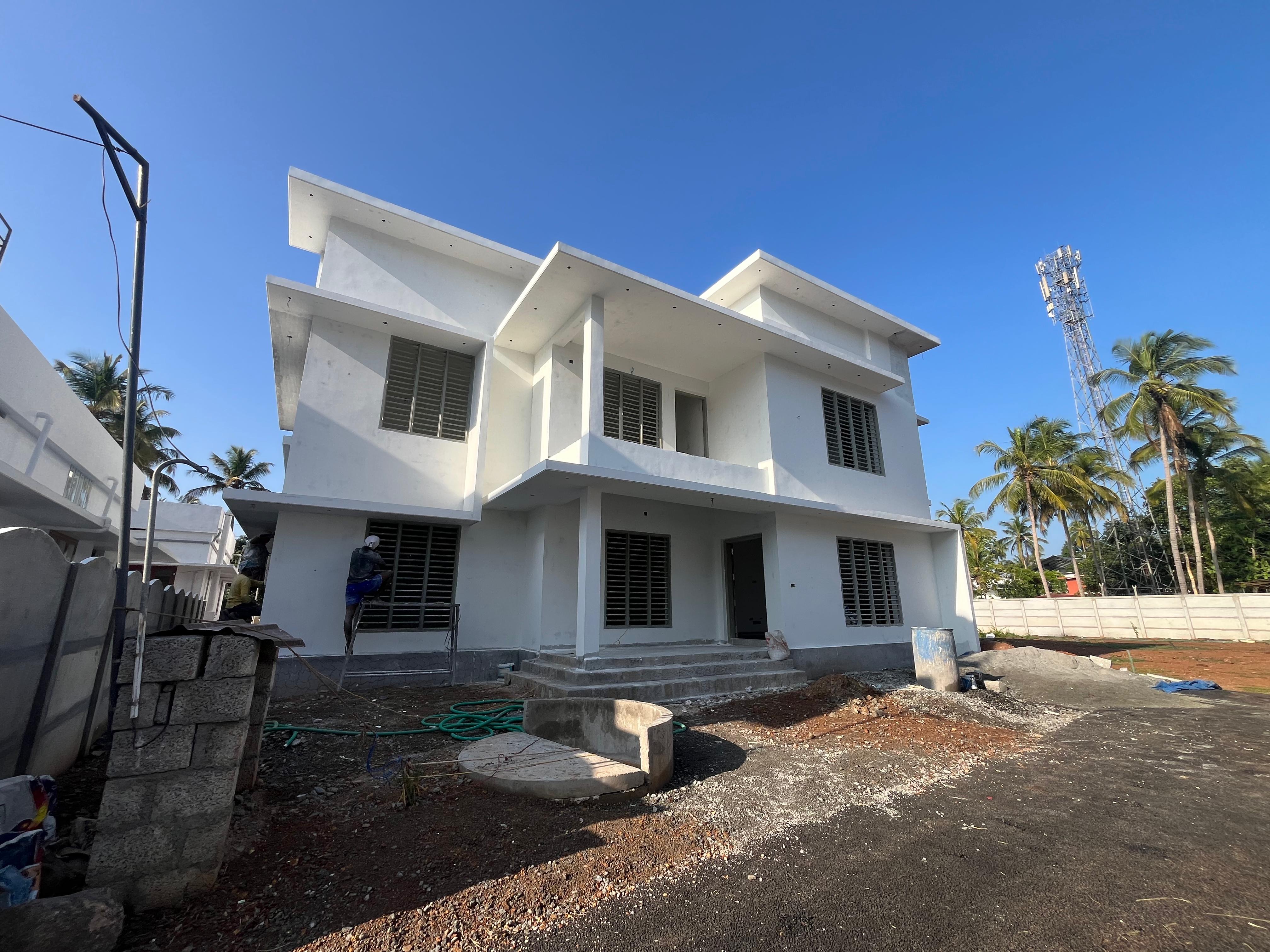 New villa located at Vellanikara Mannuthy Thrissur. newly built house 1850SqFt, 6Cent semi-furnished, newly villa got 4 bedroom, generous living space, stylish finished Dining, Kitchen platform with black granite counter top and stainless steel sink with single bowl and drain board, wardrobes, 4bathroom, common toilet, generous Balcony, wide work area, , brand vitrified tiles in sit out, living, dining, bedrooms, , Unlimited natural water supply through the internal pipeline from the open well. This home beautifully planned that whenever you step out you witness an abundance of verdant greens.