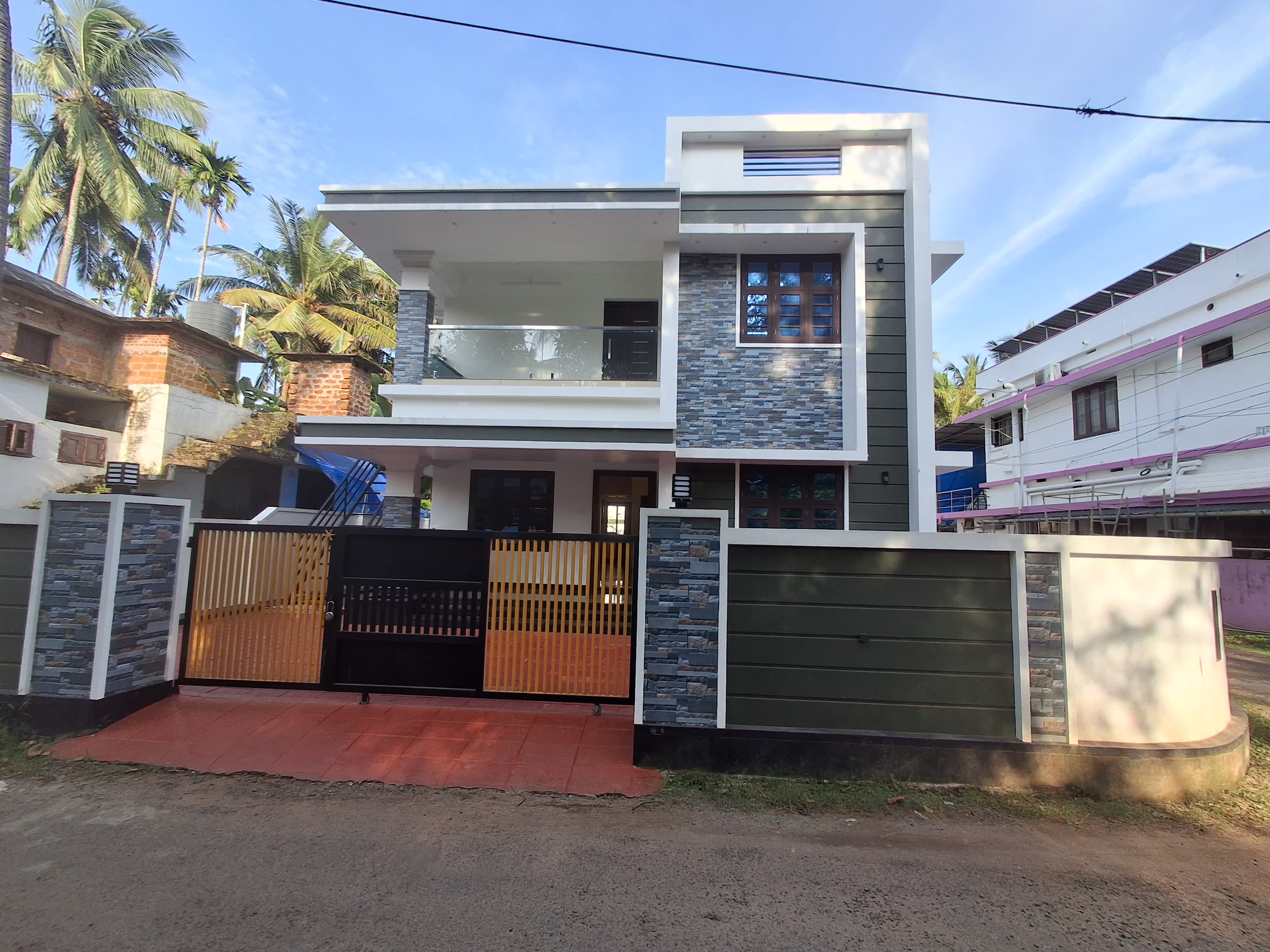 villa located at Kuttur Thrissur. 2000SqFt,5.5Cent Semi-furnished, posh villa got 4 bedroom, generous living space, stylish finished Dining, Kitchen platform with black granite counter top and stainless steel sink with single bowl and drain board, wardrobes, 4bathroom, common toilet, generous Balcony, Superior quality vitrified tile flooring, brand vitrified tiles in sitout, living, dining, bedrooms, kitchen and balcony and ceramic tiles in toilets and work area, , Unlimited natural water supply through the internal pipeline from the open well. This home beautifully planned that whenever you step out you witness an abundance of verdant greens.